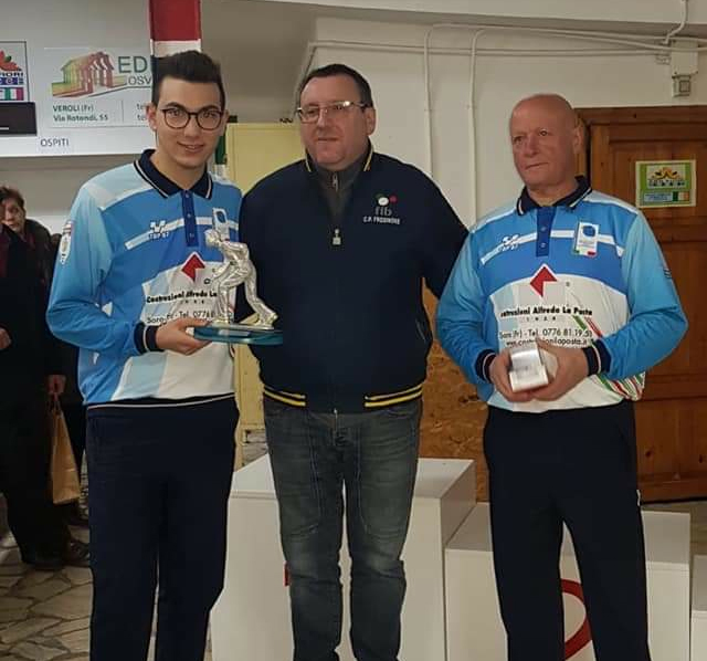 E’ terminata con la vittoria della coppia Riccardo Alonzi-Rossano Pisani della bocciofila Primavera contro la coppia del S. Gerardo (FR), Quattrociocchi Gabriele-Carinci Gerardo nel “ 1° Trofeo Della Gioventù “, gara Provinciale, a coppia Imposta, a Terzina, promossa dalla bocciofila I Fiori e diretta dall’Arbitro Regionale Maugeri Nunzio. Al terzo posto la coppia Geremia Alisia-Galli Matteo della società I Fiori, quarto classificato Maugeri Aurora-Maugeri Andrea della società I Fiori. Presenti alla premiazione Mauro Iafrate Presidente del Comitato Provinciale e Martini Giancarlo Consigliere Provinciale. Un ringraziamento particolare a tutti gli atleti partecipanti e alla società I Fiori per l’organizzazione.