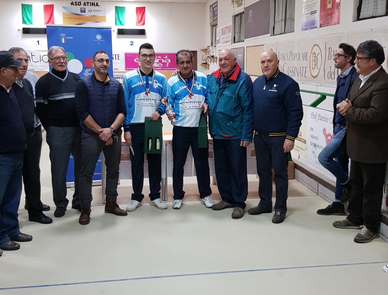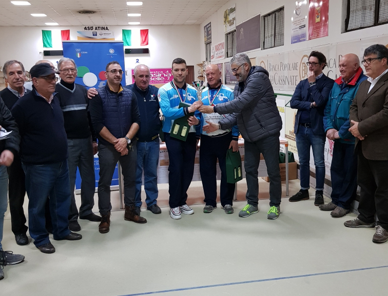 Il duo, Adriano Giovannone-La Rocca Gabriele della società C.B. Comunale R. Olsaretti Castelliri si sono imposti nella Gara Regionale, specialità Coppia, per le categorie A/B/C, “ Trofeo Bar DIFOLCO “ promossa dalla bocciofila A.S.D. ATINA, sponsorizzata da Caffè DIFOLCO e diretta dall’Arbitro Regionale Achille Marrocco. La gara è stata vinta, con merito, battendo in finale la coppia di Acli90, Enzo Ricciotti-Alberto Ciocchetti. Sul gradino, più basso, del podio, si è classificata la coppia Riccardo Alonzi-Antonio Vinci (Primavera) e Marco Recchia-Rossano Pisani (Primavera). Oltre ad un nutrito pubblico, erano presenti alla premiazione: il Presidente del Sodalizio Pietro Iannetta insieme al suo Direttivo, il Sindaco di Atina Adolfo Valente con l’Assessore allo Sport Quirino Di Paolo, l’immancabile Presidente del Comitato Mauro Iafrate accompagnato dai Consiglieri Giancarlo Martini e Marco De Luca.