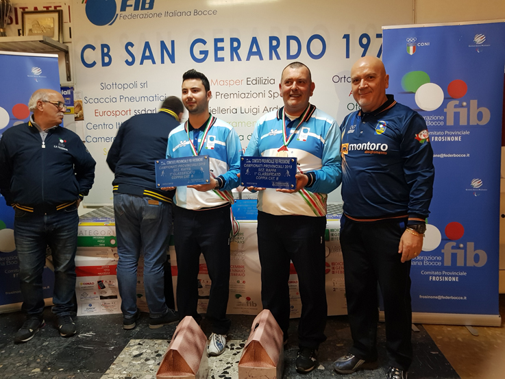 Una domenica da ricordare per gli appassionati di bocce che hanno assistito, nel pomeriggio di domenica 10 febbraio, sulle corsie di gioco della bocciofila, del capoluogo ciociaro, S. Gerardo, alla conclusione del 3° appuntamento dei Campionati Provinciali 2019 per le categorie A-B-C. Nella specialità Terna, categoria A, si impone la formazione della società C.B. S. Gerardo, Marco De Luca-Manuel De Luca-Ersilio Lisi che battevano in finale, Lucio Pontone-Carlo Lanni-Nicola Mello della bocciofila Amici Del Mare (Cassino). Nella specialità Coppia, categoria B, 1° classificato Alonzi Gianpaolo-Di Vito Vincenzo della società Primavera (Sora). Seconda coppia classificata, De Carolis Germano-Canestraro Domenico della bocciofila La Torre (Campoli Appennino). Nella