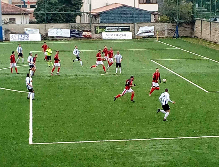 Primo tempo combattuto, ma avaro di occasioni, con la posta in palio pesante per entrambe le squadre. Al 10’ Reali devia in rete l’assist di Cano, ma il guardalinee sbandiera il fuorigioco e la rete viene annullata. Al 24’ iniziativa di Pellino sulla sinistra, stoppata dal portiere di casa Saccucci in corner. Sugli sviluppi del calcio d’angolo Saccucci vola a deviare la botta dal limite di Faiola. Al 29’ si vede il Colleferro, ma Santoro è pronto sulla conclusione di Gabrieli.