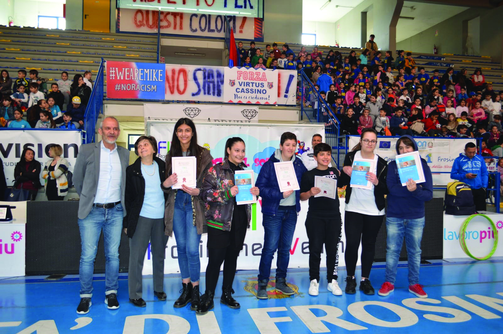 Che spettacolo, “I Giochi del Sorriso” tornano e fanno centro! Ebbene sì, Mercoledì 13 marzo, presso il “Palazzetto dello Sport” di Frosinone, si è tenuta l’ormai nota e tanto attesa manifestazione organizzata come sempre dal presidente dell’associazione “Frosinone in vetrina”, Massimo Mirone, con la partecipazione del personale tecnico dell’AICS, e dedicata a tutti i giovani allievi delle principali scuole ciociare (Primo e Secondo Comprensivo frusinati, “Caio Mario” e “Don Andrea Coccia” di Veroli, i plessi di Ausonia, Esperia, Coreno Ausonio ed Arnara) e non, visto che quest’anno hanno partecipato anche gli alunni dell’Istituto Comprensivo di Cortina (Roma) e la scuola “Grazia Deledda” di Bologna. “I Giochi del Sorriso” proprio nel nome racchiudono la chiave del “tutto”: la felicità, la serenità, il coraggio, …che vede nei giovani una sorgente inesauribile. Sono proprio loro, infatti, che con travolgente entusiasmo e gioia di vivere sanno rendere ogni cosa, anche la più semplice, unica e speciale, riescono a cogliere la bellezza di questo meraviglioso ed incredibile viaggio che è la vita. Tutto ciò è apparso nero su bianco nel Concorso Letterario, ormai giunto alla quarta edizione, riservato alle scuole primarie e secondarie di primo grado: “Sorridi con le parole”. Anche quest’anno, come il precedente, sono stati premiati tutti quegli elaborati che si sono contraddistinti per originalità, creatività, sensibilità e profondità. I giovani hanno scelto di imprimere su carta, attraverso racconti, poesie e fumetti, i loro pensieri, le loro riflessioni, le loro emozioni. Hanno cristallizzato i loro stati d’animo, hanno dato voce a tutti i loro sentimenti che, forse in altro modo, non sarebbero mai venuti fuori. Hanno tanto da donarci, da insegnarci, soprattutto attraverso la loro spontaneità e la loro semplicità, che hanno messo in pratica anche nelle attività ludico-sportive svoltesi nell’arco della manifestazione. Hanno riscoperto ed apprezzato i giochi della tradizione, quali: il tiro alla fune, ruba bandiera e la corsa con i sacchi. Tutto questo sempre nel pieno rispetto delle regole e dei ruoli ed avente come principale fine e scopo l’interazione, la socializzazione e il senso di aggregazione.
