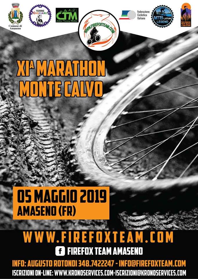 Si svolgerà Domenica 5 Maggio ad Amaseno la prestigiosa Marathon Monte Calvo giunta quest’anno alla sua undicesima edizione. La gara vedrà al via circa 400 biker provenienti da tutta Italia che si daranno battaglia sui 62 chilometri del tracciato di gara che si presenta quasi completamente sterrato con un dislivello di 1.760 metri. La parte organizzativa è curata dall’Asd Firefox Team Amaseno con il patrocinio del Comune di Amaseno da sempre al fianco degli appassionati di questa disciplina sportiva. La Marathon Monte Calvo sarà la prova di apertura del circuito MTB Latium Legend, una challenge di quattro prove ideata dal consigliere nazionale FCI Federico Campoli ed inoltre quarta tappa del circuito Mtb TERRE CIOCIARE. Il programma di domenica prevede alle 7.30 il ritrovo con verifica tessere e ritiro numeri presso il Palatenda Comunale in Via Prati mentre alle 9.30 ci sarà il via da Piazza 11 Febbraio, sede anche dell’arrivo. A gara finita ci si sposterà di nuovo al Palatenda Comunale per la premiazione ed il ricco buffet dopo gara a base di carne bufaline e mozzarelle di Amaseno. Fra i favoriti della gara il marchigiano Leopoldo Rocchetti vincitore di ben quatto edizioni della Marathon Monte Calvo.