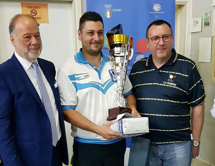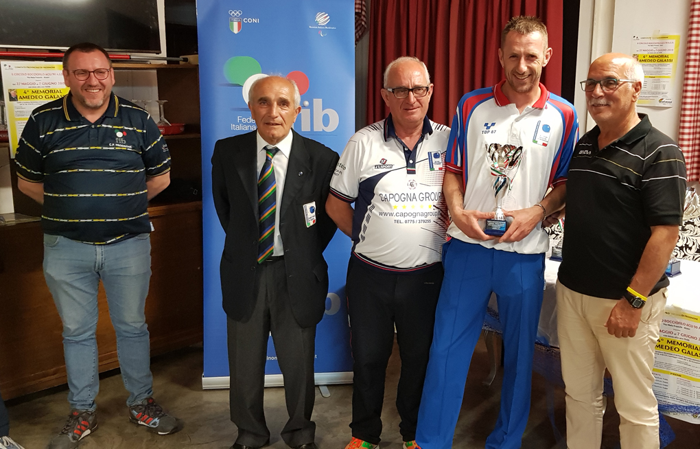 Due prestigiosi appuntamenti boccistici si sono svolti questo fine settimana in provincia di Frosinone. In terra di Alatri dal 27 Maggio al 7 Giugno, si è svolta una gara serale, specialità Individuale a sorteggio misto, denominata “4° Memorial Amedeo Galassi”, organizzata dalla bocciofila Acli 90, presieduta da Noemi Paniccia, diretta dall’Arbitro Regionale Natalino Coratti. La gara è stata sponsorizzata dalla Famiglia Galassi. Ad aggiudicarsi il Memorial è stato il bravo atleta della bocciofila Primavera, Luca Casinelli che ha battuto, nella finale, il portacolori della società La Croce-Anitrella, Gabriele Sandro. Terzo classificato Casinelli Stefano della Virtus SS Assunta (RM), quarto classificato Maugeri Andrea (I Fiori, Isola del Liri). Le premiazioni presenziate dal Presidente del C. P. di Frosinone Mauro Iafrate, insieme ai Consiglieri Provinciali Marco De Luca, Martini Giancarlo e Altobelli Franco, presente il Consigliere Regionale Mario Zaccardelli e la Famiglia Galassi sponsor della kermesse. A fine premiazione, il bar ristorante di Noemi e Sara Paniccia, ha offerto a tutti i presenti, una degustazione culinaria.