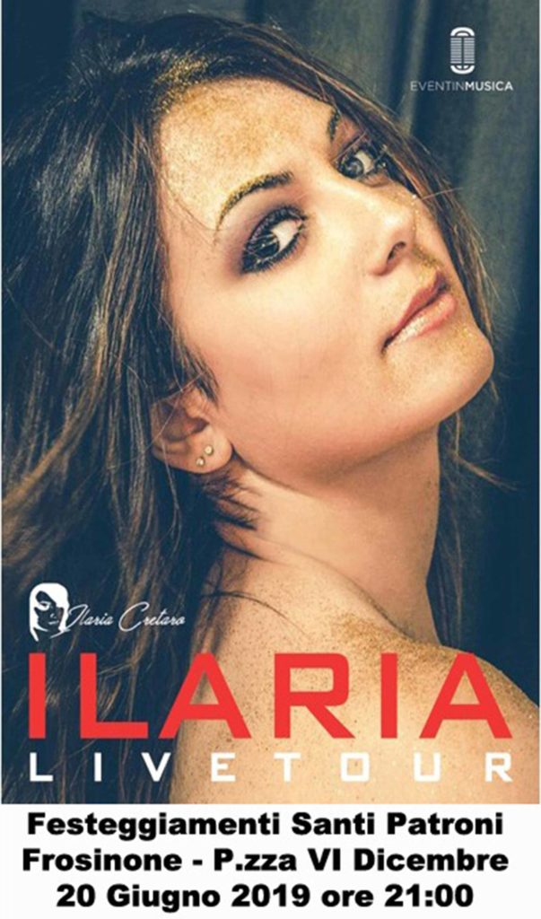 Ilaria Cretaro in concerto domani, alle ore 21, in piazza VI dicembre a Frosinone, in occasione dei festeggiamenti dei Santi Patroni di Frosinone, San Silverio e Sant’Ormisda.