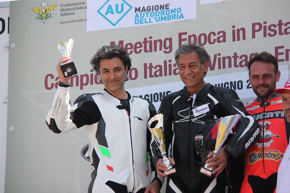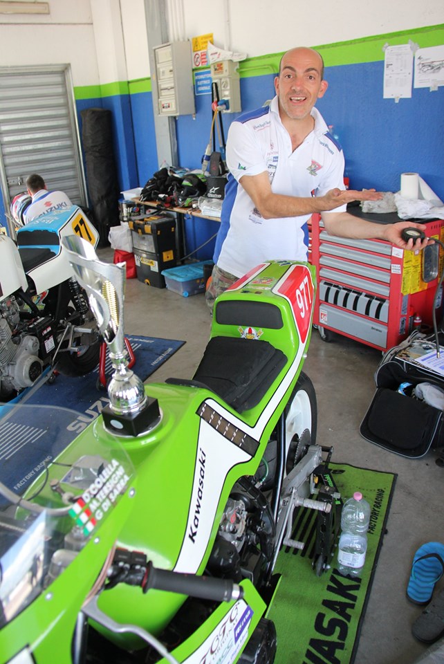 Classe 1000 e 500 TT. Diego Colella (Kawasaki 750) con una gara tutta all’attacco conquista la seconda piazza preceduto per soli 4 secondi da Giorgio Gabellini (Ducati 1000) gara testa a testa per 15 giri ma la superiorità di cilindrata l’ha fatta da padrona ed il nostro Dieguccio si e’ dovuto accontentare della piazza d’onore. Nella stessa gara classe 500 TT, Gianni Di Sarra (Honda 500) purtroppo dopo la pole-position del sabato ha dovuto abbandonare la gara dopo 7 giri per problemi tecnici mentre occupava la terza posizione di classe.
