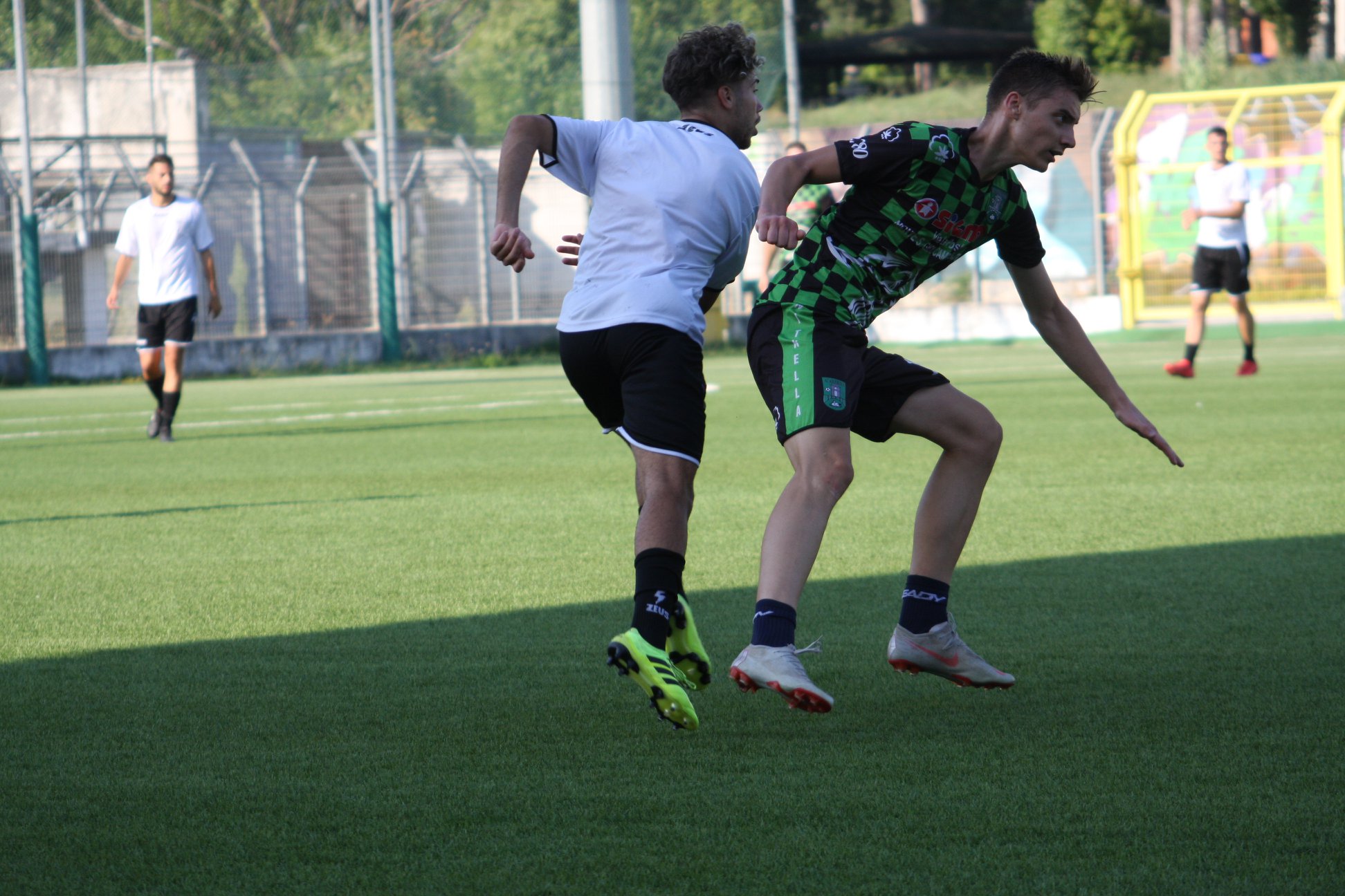 Nel quarto test amichevole precampionato. I neroverdi allenati da mister Claudio Nanni, nonostante la categoria di differenza, hanno tenuto testa nel primo tempo ai bianconeri di mister Ezio Castellucci, che sono andati in vantaggio con capitan Di Stefano e hanno fatto vedere buone trame di gioco e una buona intensità, per poi dilagare nella ripresa dopo il momentaneo pareggio di Bianchi su calcio di punizione, grazie al solito brasiliano Chorinho, autore di una doppietta (tocco a porta vuota e delizioso pallonetto) e artefice del 4-1 siglato da Alessio Luiso con un tocco sulla linea di porta.