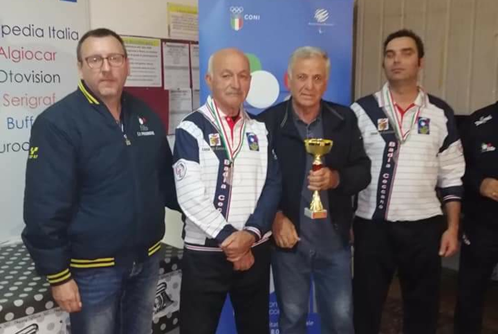 Fermo il Campionato di Serie A2, domenica 3 Novembre si è disputata una gara Regionale specialità Coppia, per le categorie A/B/C, organizzata dalla bocciofila San Gerardo (FR), presieduta da Domenico Daniele, diretta dall’Arbitro Nazionale Mario Zaccardelli. Davanti ad un nutrito pubblico di appassionati, il duo Felice Magnone e Domenico Urbano del C.B. R. Olsaretti-Castelliri battendo in finale la coppia del San Gerardo Domenico Daniele e Gerardo Carinci si aggiudicavano il Trofeo San Gerardo. Terzi classificati Sandro Gabriele e Simone Casinelli (La Croce-Anitrella), quarti classificati Mario Capani e Vincenzo Masi (Badia Ceccano).