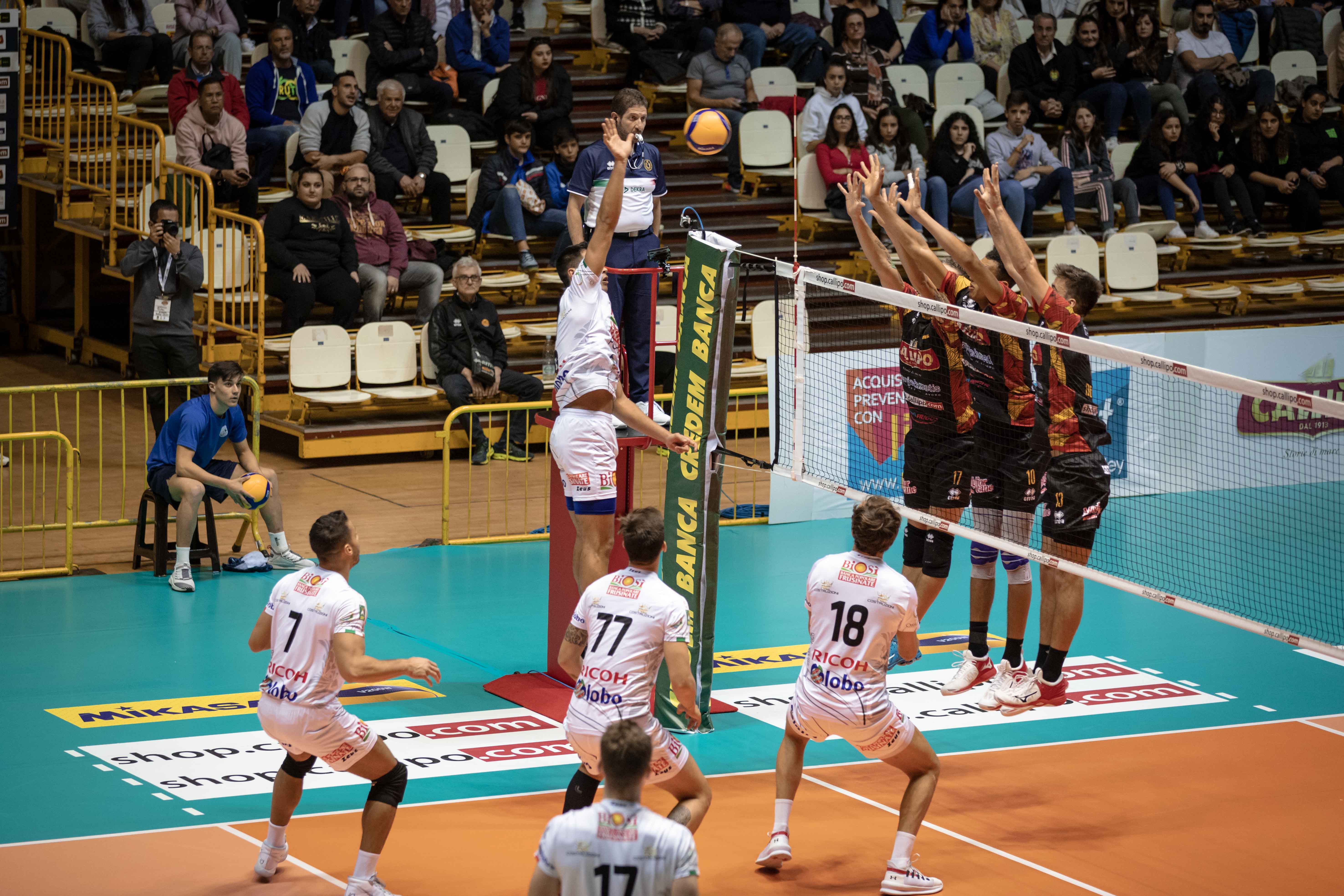 Coach Colucci risponde all’offensiva con il suo sestetto tipo, quello formato dalla diagonale Radke-Miskevich, dai centrali Scopelliti e Caneschi, i martelli Joao Rafael e Fey, e il libero Sorgente.