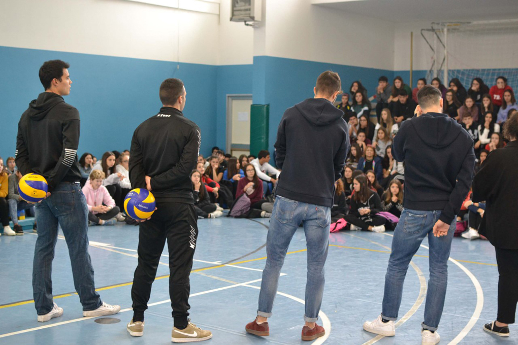 “E’ andata molto bene la nostra prima visita stagionale – racconta coach Ottavio Conte -. I ragazzi e le ragazze dell’istituto hanno partecipato facendo domande e interessandosi molto alla vita degli atleti presenti. Per dar loro la possibilità di essere più partecipi, ed avere un contatto ancora più ravvicinato con i nostri ragazzi, li abbiamo divisi in due gruppi, dandola possibilità a entrambi di fare qualche esercizio di pallavolo che è stato molto gradito dagli alunni e soddisfacente per gli atleti nel vedere la grande partecipazione”.