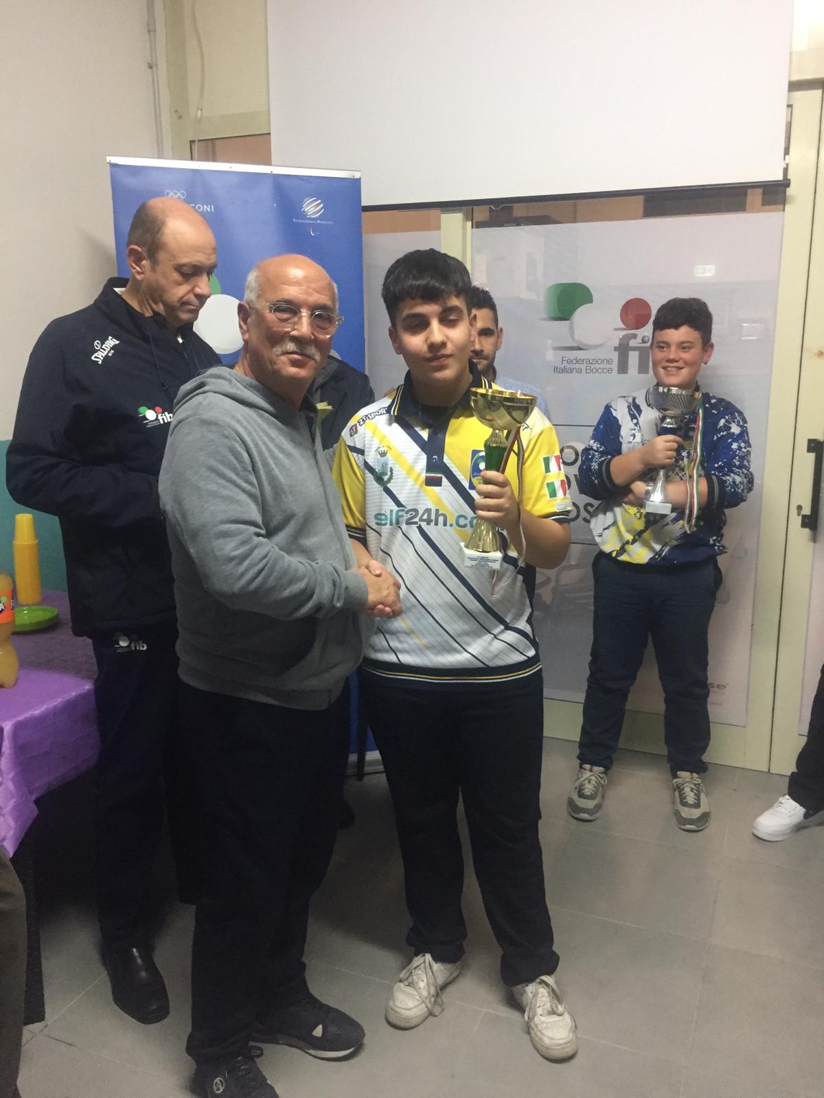 Al Comunale R. Olsaretti di Castelliri, sabato 23, si è disputata un gara Regionale giovanile U18/U15-U12, Individuale, organizzata dal Regionale, presieduta da Sandro Palombo, diretta dall’Arbitro Nazionale Massimo Gabriele. I ragazzi della bocciofila di Boville (Roma) sono stati i protagonisti di questa manifestazione, infatti si sono aggiudicati entrambe le competizioni. Nell’Under 18 vittoria di Matteo Chiaretti e nell’Under 12-15 vittoria di Francesco Casazza. Nell’occasione, il Comitato Provinciale di Frosinone ha voluto premiare con una targa ricordo la neo Campionessa Europea Sanela Urbano. Hanno presenziato alla kermesse il Presidente Regionale FIB Dott. Vincenzo Santucci, il Presidente Onorario del C.P. di Frosinone Giacomo Carinci e i Consiglieri Provinciali Piergiorgio Ianni, Franco Altobelli e Giancarlo Martini.