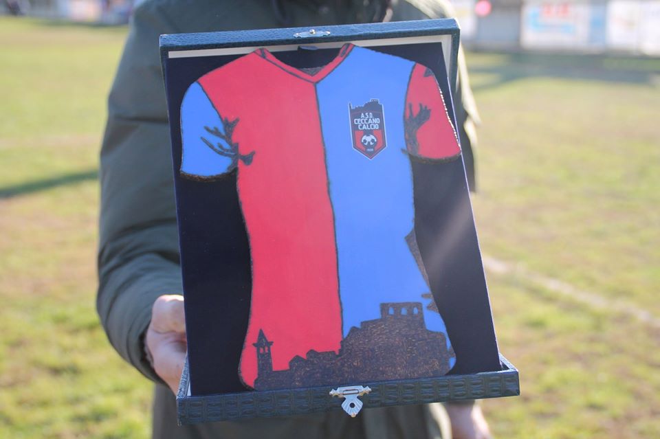 Giornata indimenticabile ed emozionante quella vissuta dal popolo rossoblù in occasione dell’avvio delle celebrazioni del centenario della costituzione del Ceccano Calcio 1920. Domenica scorsa, prima della gara di campionato contro il Rocca Priora, terminata sullo 0-0, so è assistito alla sfilata dei ragazzi della Scuola Calcio del Ceccano Academy. Proprio al più giovane iscritto della Scuola calcio, il piccolo Luca Mastrogiacomo, è stata fatta indossare la maglia celebrativa del centenario. Si è quindi passati alla consegna del quadro in legno raffigurante la maglia celebrativa e de “l’pall d’ciccan”, donati dall’artigiano Domenico Del Brocco al Ceccano Calcio 1920, rappresentati per l’occasione dal direttore generale Sergio Milo e dal team manager Livio Pizzuti. Subito dopo Davide Ricci, in rappresentanza della mitica Curva Nord, l’attuale presidente Thomas Iannotta, il presidentissimo della storica quarta serie Domenico “Mimmo” Aversa e l’ex sindaco Roberto Caligiore, accompagnato dall’ex delegato allo sport Angelo Macciomei, hanno quindi librato verso il cielo proprio la maglietta celebrativa del centenario.