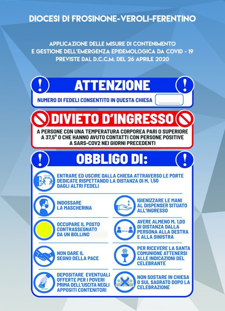 Il Padreterno capirà che la paura fa… novanta. Arriva però puntuale ed è cosa giusta il manifesto a firma della Confraternita e del Capitolo. Si può entrare solo con la mascherina e rispettando la normativa vigente in materia. A controllare i collaboratori scelti dal Rettore don Angelo Oddi. Non ci sarà il controllo della temperatura. In Chiesa potranno entrare come detto novanta fedeli. Come verranno scelti, non è dato sapere. Questa la locandina ufficiale che sembra una tabella di inizio lavori in un cantiere. Alla fine in corteo controllato la sera della vigilia della Santa Patrona tutti sotto la loggia delle Benedizioni dove mons. Vescovo impartirà una benedizione speciale per Veroli e per tutta la Diocesi.
