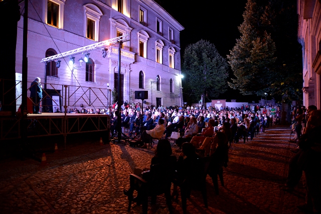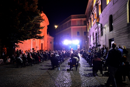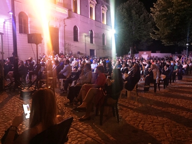 Il superlativo assoluto ‘gremitissime’ riferito alle due postazioni (Piazza Santa Salome e Orto del Vescovo) è il paradosso sulla normativa del distanziamento e dell’assembramento. La ‘lectio magistralis’ del filosofo arrivava alle attente orecchie dei numerosi presenti dal palcoscenico a lui riservato in fondo alla piazza prospiciente la Basilica dedicata alla Patrona della città.