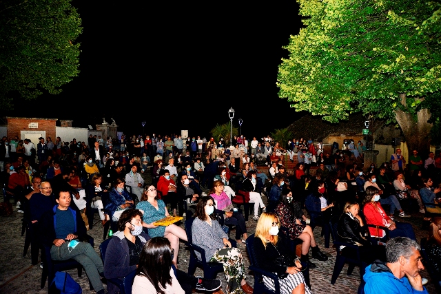 Il tutto dopo che la bella ‘hostess’ della Pro Loco aveva ‘misurato’ la febbre a quanti si avvicinavano al passaggio delle ‘forche caudine’, si fa per dire, della vigilanza attenta a reperire sedie agli illustri ospiti. Le sedie non sono state sufficienti tant’è come si vede da alcune foto, molti spettatori erano sparsi un po’ dovunque alla rinfusa, alla faccia del distanziamento e dell’assembramento. Per questo ve l’immaginate che fila all’entrata! Ve l’immaginate al termine della conferenza del filosofo alle due uscite incontrollate che caos si è registrato?