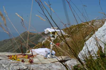 Ho visto qualche foto: un Altare di pietra, poche e semplici cose necessarie per il decoro della Celebrazione, un anfiteatro naturale creato dalle pendenze della montagna, ho pensato a tanti momenti della vita di Gesù , a tanti racconti evangelici. Ho visto tante persone, molti volti conosciuti, ho visto volti attenti e rispettosi di quel momento di preghiera fatta insieme. Ho come percepito silenzio : silenzio fuori…silenzio dentro. In qualche foto – lo dico con infinito rispetto – mi pare aver visto occhi solcati dal pianto… La montagna, il pacifico e rispettoso stare insieme, la fede come dono condiviso – anche di chi dice di non averne più una – , sa farci anche questi regali!