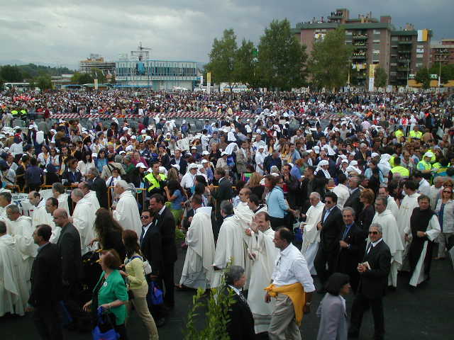 Diciannove anni fa Papa Giovanni Paolo II venne in visita alla nostra Diocesi. Arrivò con la papa mobile nel grande slargo del quartiere dei Cavoni dove erano in corso i lavori della costruenda chiesa poi dedicata a San Paolo. E proprio lì mons. Salvatore Boccaccio il vescovo lo accolse con migliaia di persone. Fu una giornata memorabile per tutti ed anche per me che mi accostai ad una colonna di cemento della costruenda Chiesa, armato di un paio di macchine fotografiche per scattare oltre mille foto che poi vennero usate per una mostra speciale dedicata al Papa ed a mons. Salvatore Boccaccio dopo la sua salita in cielo. Tanto ci sarebbe da ricordare. A cominciare dal coro che composto da ottocento elementi, intonò lo ‘Jubilate Deo’, dai ragazzi dei vari movimenti ed associazioni laicali che accolsero il ‘loro’ Papa Giovanni, il Papa delle giornate mondiali della gioventù, con le bandiere della Pace, cantando Hopes of peace del Gen Rosso, a distanza di 5 giorni dalla tragedia delle Twin Towers, del giovane albanese che raccontò una sua esperienza di vita ricca di amore, di don Tonino che informò i presenti della sua vocazione sacerdotale confermata nella GMG di Tor Vergata, del ritratto artistico realizzato su bronzo dai carcerati delle carceri di Frosinone, dello zucchetto che Giovanni Paolo lasciò in ricordo alla Basilica di Sant’Erasmo di Veroli.