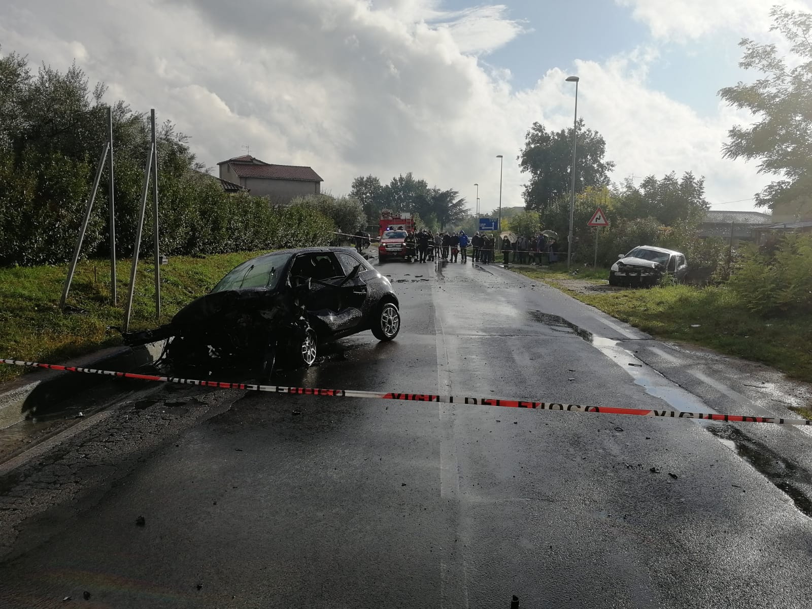 Il terribile schianto è avvenuto, forse anche a causa della pioggia incessante, tra una Fiat Cinquecento e un’Opel Astra.