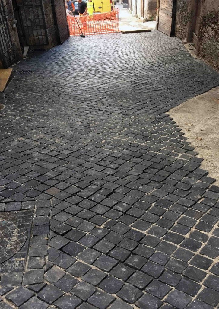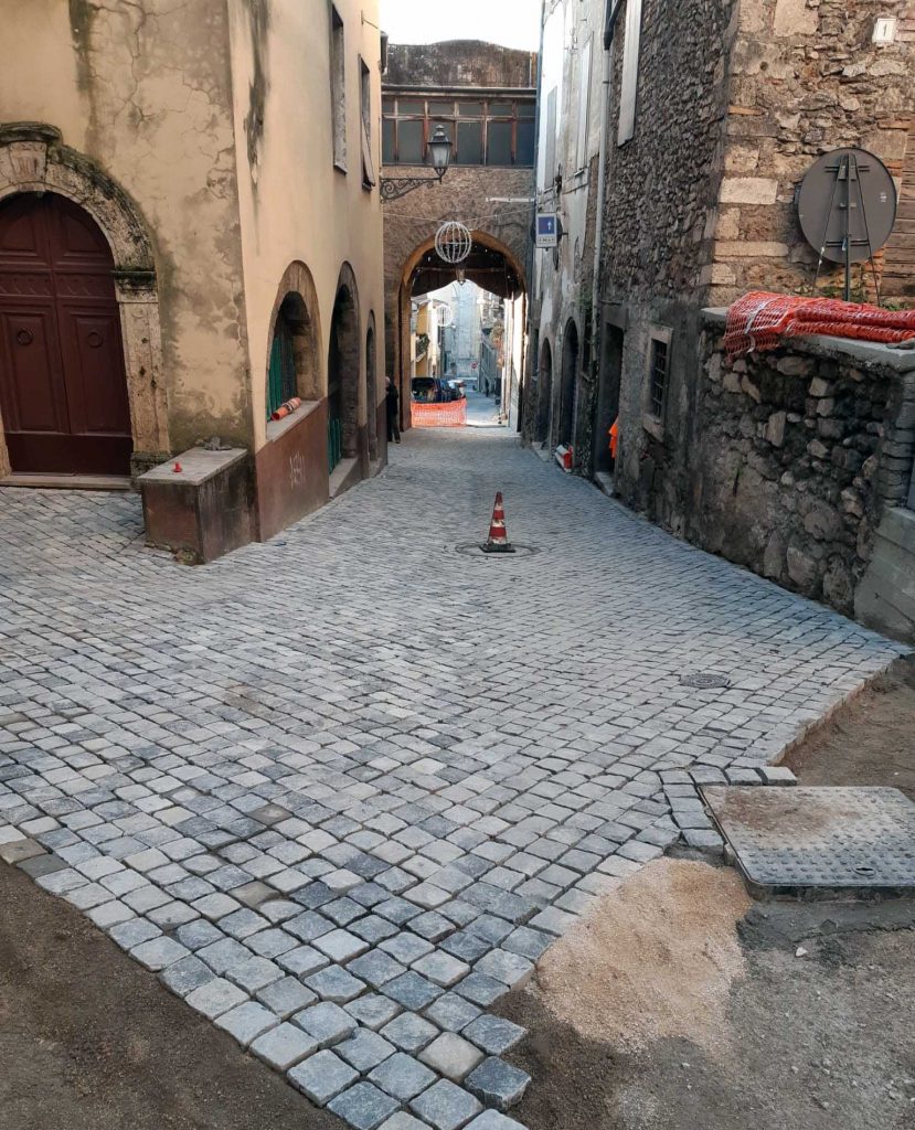 La riprogrammazione dei lavori ha inevitabilmente determinato un allungamento dei tempi inizialmente previsti che sono stati anche ulteriormente interessati dagli inevitabili imprevisti tipici a siffatte tipologie di cantieri. Altro importante aspetto della collaborazione con l’Amministrazione comunale si è concretizzato con il totale rifacimento della pavimentazione mediante posa in opera di sampietrini scuri, in sostituzione di quella preesistente e malandata.
