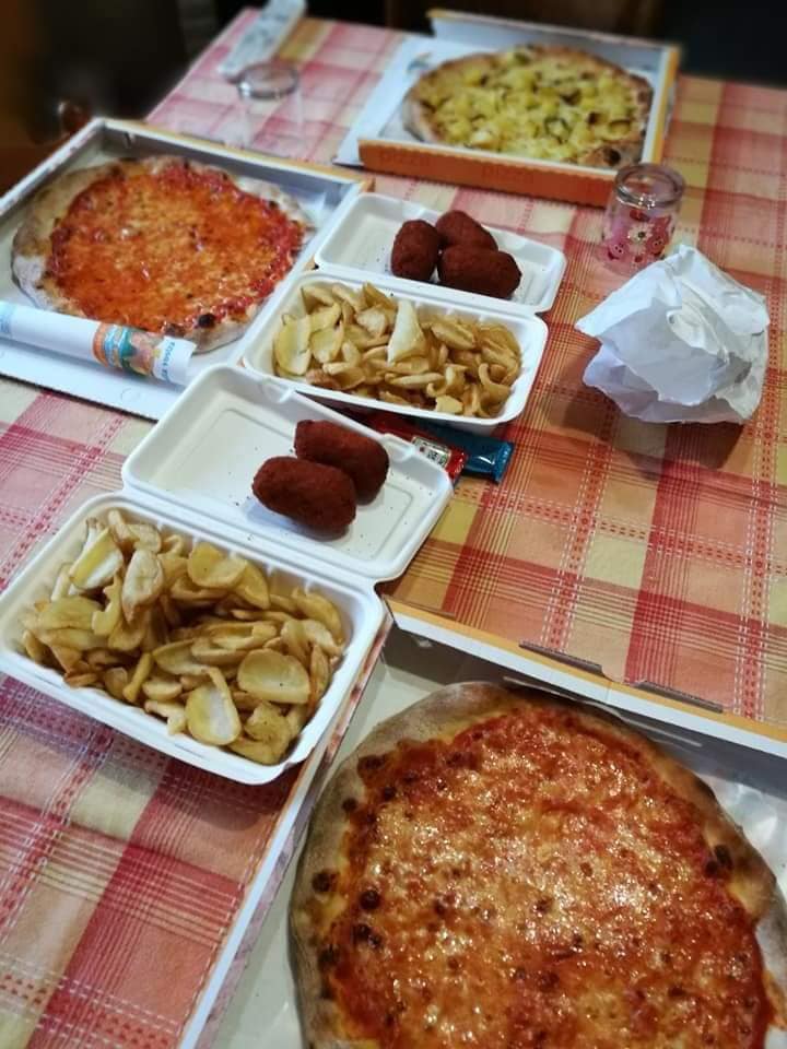 “Siamo attrezzati per l’asporto ed allora vedi i tanti contenitori pieni di pizze, patatine fritte, al forno, supplì, panini, frittura di pesce, arrosto misto, trippetta e quant’altro che consegniamo a domicilio”.