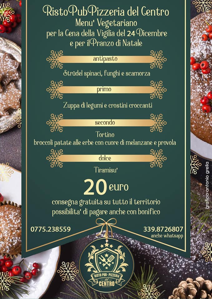 L’asporto è l’arte nuova delle specialità culinarie di casa. Basta una prenotazione, tra gli altri locali, anche il Risto Pub Pizzeria del Centro. Per le prossime feste ha predisposto diversi menù che sono di ottimo gusto. Provare per credere!