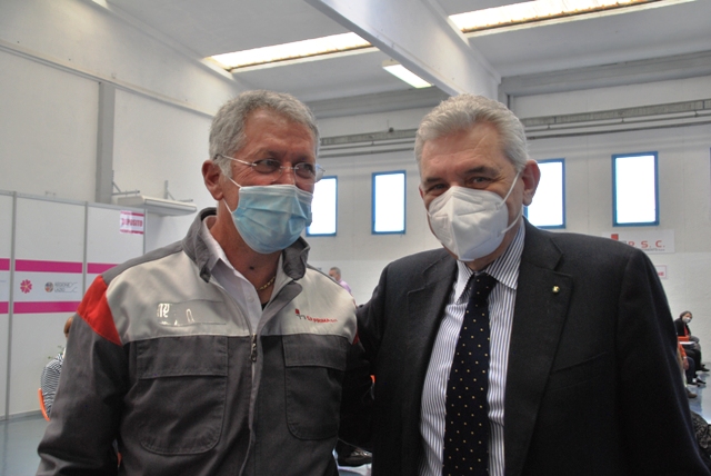Vaccini che anche il personale delle aziende dovranno vedersi inoculati. Tant’è che lo scatto per una foto ricordo è stata quella con Piero Tombolillo, della Prima Sole Components, quale primo dipendente seduto all’interno della sala operativa per attendere il fatidico quarto d’ora prima di andare a casa, ovviamente dopo aver visto la siringa sul braccio per la prima dose.