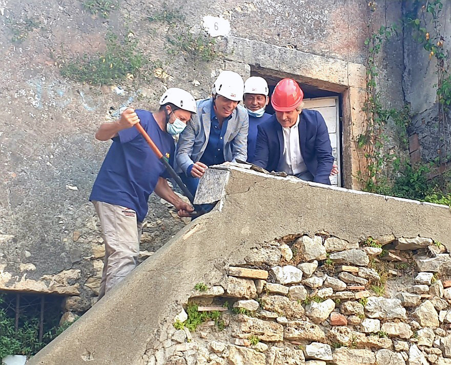 Nei giorni scorsi, dunque, in vicolo Odeo è iniziata la demolizione della struttura in pietra antistante l’area archeologica: insieme al sindaco Antonio Pompeo, all’ufficio tecnico, ad assessori e consiglieri comunali e a tutta la squadra amministrativa e degli archeologici che hanno seguito l’iter, c’erano anche l’architetto Paolo Culla, progettista incaricato e la Soprintendenza, rappresentata dal funzionario Chiara Delpino.