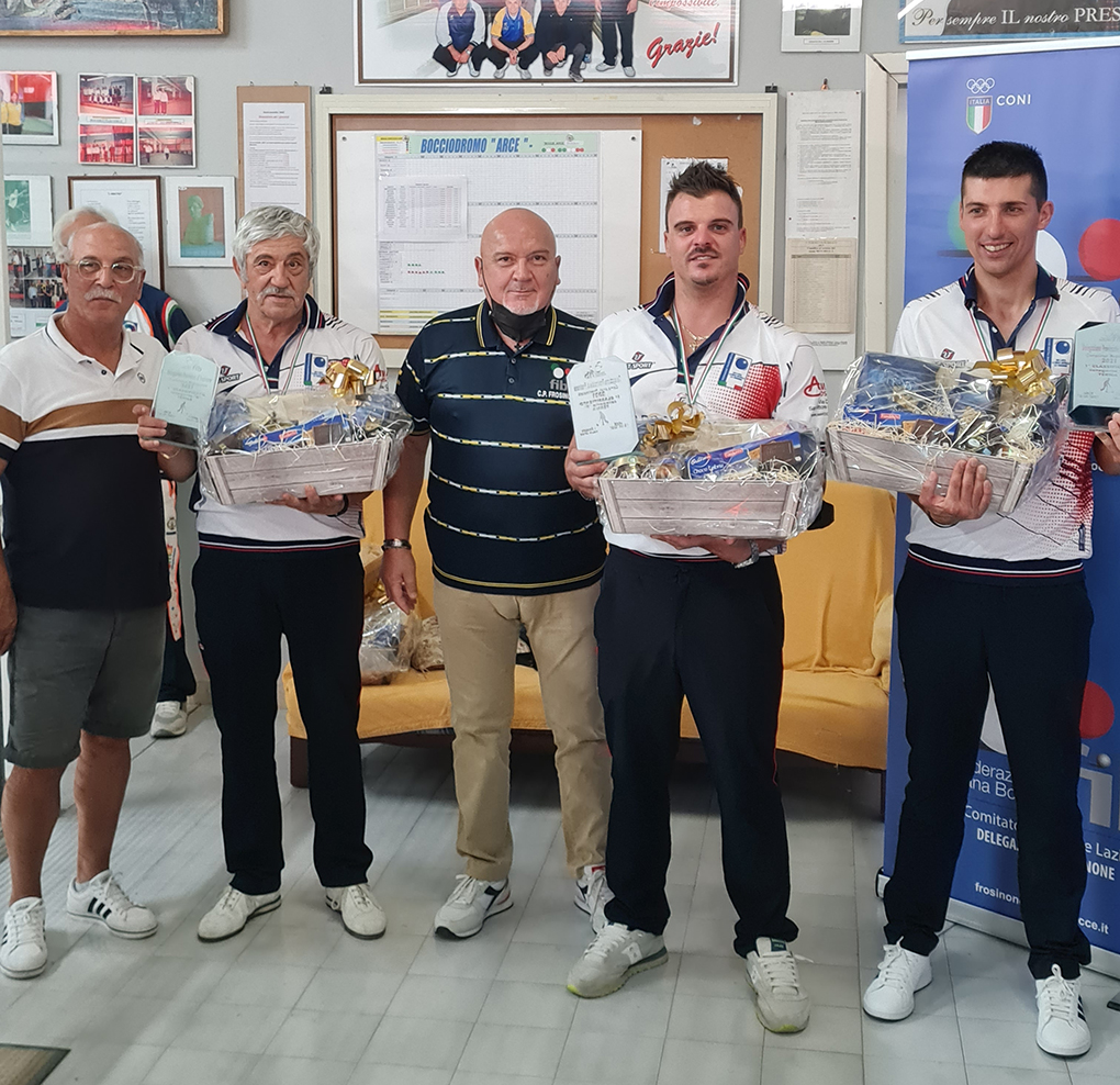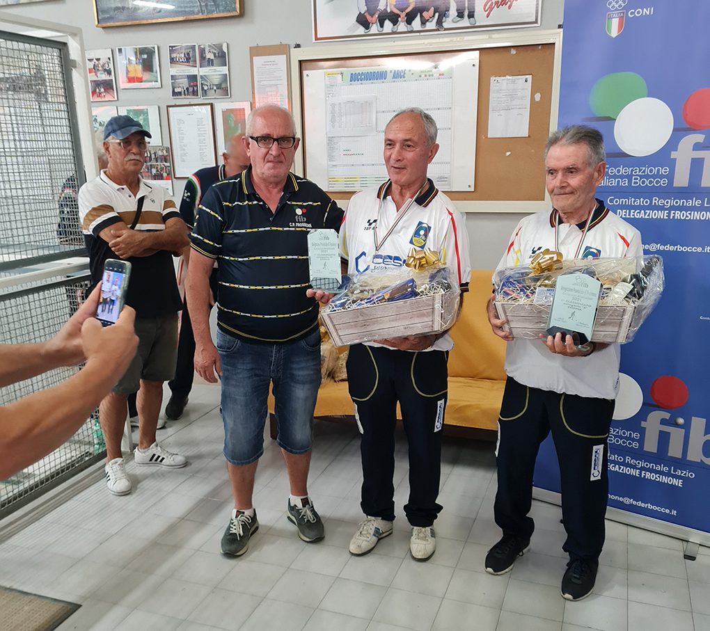 Sui campi dell’organizzatrice di Arce sono stati assegnati gli altri titoli: il titolo della categoria B, specialità Terna, se lo sono aggiudicati Marco Ignagni-Mauro Casinelli-Mirko Greci della bocciofila La Croce-Anitrella che in finale hanno battuto la formazione della società La Folgore (Cassino), Giovanni De Marco-Remo Di Principe-Umberto Tomassi; nella categoria C, specialità Coppia, hanno trionfato i portacolori della Folgore, Tommaso Aquilino-Alberto Ficaccio che hanno battuto in finale, Antonio Petitta-Carmine Tamburrini della società Casalvieri. Ottima l’organizzazione della kermesse ben curata dal Vice Presidente Regionale Mauro Iafrate con Giancarlo Martini, i quali hanno presenziato la premiazione insieme a Marco De Luca e Franco Altobelli, Rocco Bottone per la società di Arce. Le tre gare sono state dirette, con bravura, dall’Arbitro Nazionale Mario Zaccardelli con gli Arbitri di corsia, Mauro Casinelli e Luca Casinelli.