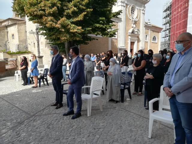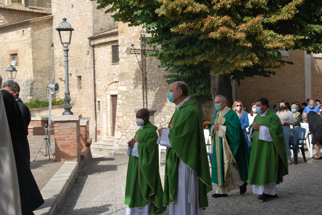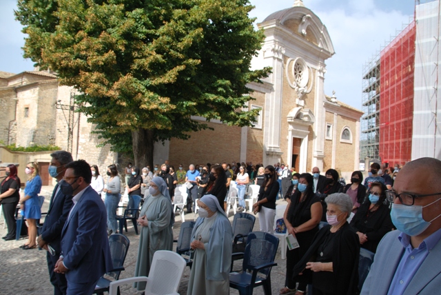 E’ stata un’dea bella ed interessante quella di celebrare la Santa Messa all’aperto davanti la Basilica della Patrona Santa Salome. Proprio in quella location che ad inizio agosto, giorno dell’entrata in vigore del controllo del Green Pass, ospitò la terza edizione del Premio Veroli alla memoria. Tutti seduti domenica mattina quelli che fortunatamente sono arrivati in tempo. Gli altri nella attigua piazza Palestrina chiusa in toto al traffico per l’evento religioso organizzato dal Rettore della Basilica don Angelo Oddi. Sul Belvedere la statua dell’Addolorata dal manto rosso e l’altare dove hanno concelebrato con don Angelo Oddi anche il parroco ed il suo vice con don Gianni Bekiaris. Il coro diretto dal maestro Luigi Mastracci ha animato la sacra celebrazione Eucaristica. Presenti insieme al sindaco Simone Cretaro, gli assessori Emanuele Fiorini e Patrizia Viglianti con la delegata alla Cultura Francesca Cerquozzi, suo marito Mauro Buschini ed il consigliere comunale Germano Caperna.