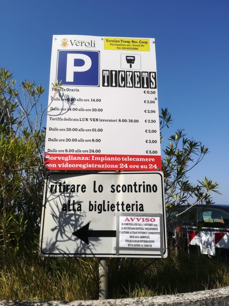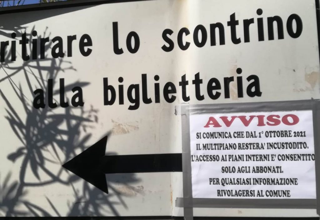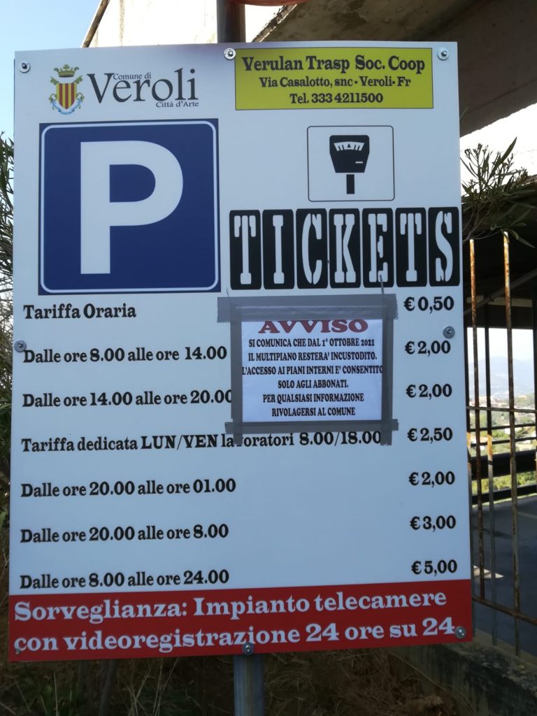 Così dall’altro ieri la Verulanum Trans Soc. Coop altro non ha potuto che riconsegnare le chiavi. Ieri mattina eravamo a scattare qualche foto nei pressi del Multipiano. Solo due auto di professori esterni che arrivano da lontano e non da Veroli a parcheggiare. Si son trovati di fronte poi quel cartello che indicava …’si comunica che dal 1 ottobre 2021 il multipiano resterà incustodito. L’accesso ai piani interni è consentito solo agli abbonati e per qualsiasi informazione rivolgersi al Comune’.