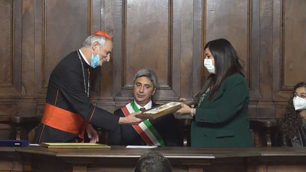 “Da oggi Sua Eminenza mons. Matteo Zuppi è nostro concittadino a tutti gli effetti. Il neo cittadino oltre alla Sua prestigiosa opera quotidiana che svolge nel mondo deve essere un esempio per tutti noi e soprattutto per i nostri giovani. Il suo impegno ci spinge ad essere più vicini al nostro prossimo ed a quanti chiedono aiuto”