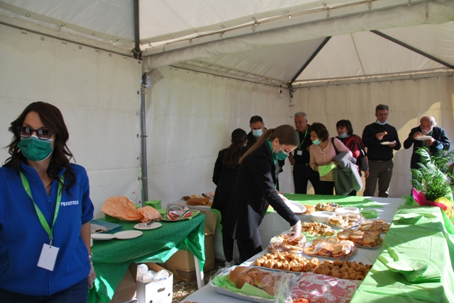 Ci si spostava ed anche un secondo taglio del nastro permetteva di scoprire la colonnina per l’inaugurazione. Poi ancora intervento degli assessori e soprattutto le spiegazioni degli addetti ai lavori sia sul significato dell’auto ibrida e di quella elettrica oltre alle specificità della colonnina ricarica Green. Il ricco buffet allestito sotto i bianchi gazebo offrivano una simpatica soddisfazione al palato dei convenuti con un brindisi ed un gustoso assaggio di quel ben di dio a chilometro zero.