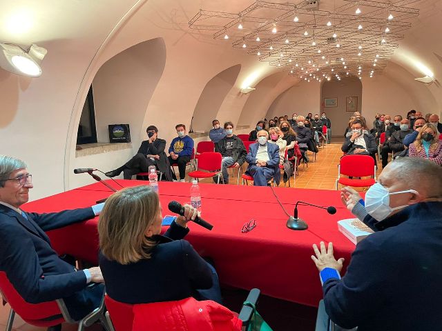 La cronaca però ci racconta che il calore della Galleria addetta ai convegni, seppur ridotta ai minimi termini per le norme antiCovid riscaldava senza i termosifoni o stufe elettriche gli attenti auditori dei dialoghi ben impostati dal collega di Ciociaria Oggi Corrado Trento.