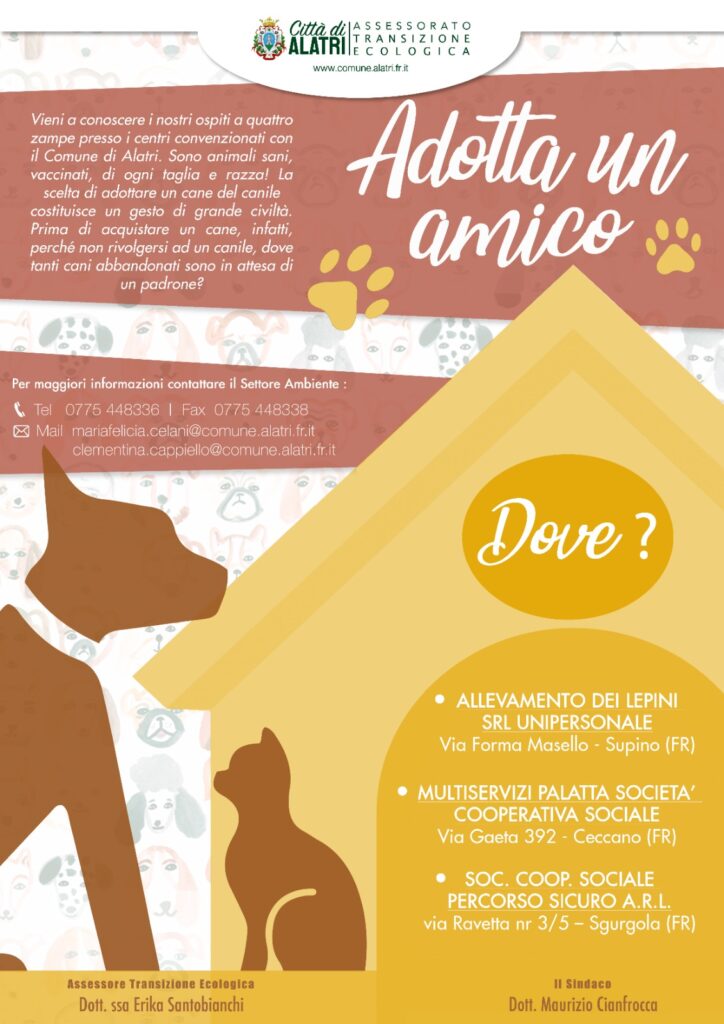 Il settore Ambiente del Comune di Alatri insieme all’Asl, all’Accademia Kronos, all’ENPA, ai tanti volontari, al canile di Sgurgola (Soc. Coop. Sociale percorso sicuro s.r.l.) e al canile di Supino (Allevamento dei Lepini srl) hanno svolto un grosso lavoro in questo senso arrivando all’adozione di un grande numero di cani, oltre 200, nell’anno 2021. Ci riteniamo soddisfatti.