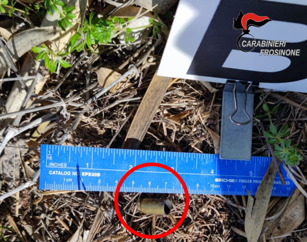 Immediato l’intervento dei carabinieri della Stazione della città di Cicerone e dei colleghi del Nucleo Operativo e Radiomobile della Compagnia di Sora. Sul posto giungevano anche il Comandante del NOR ed il Comandante della Stazione. Dalle prime verifiche e dalle ricerche effettuate sul posto, è stato rinvenuto un bossolo calibro 9×21 relativo ad un colpo esploso. Poco distante, un proiettile inesploso dello stesso calibro. Forse la pistola si era inceppata o il pistolero era poco esperto.