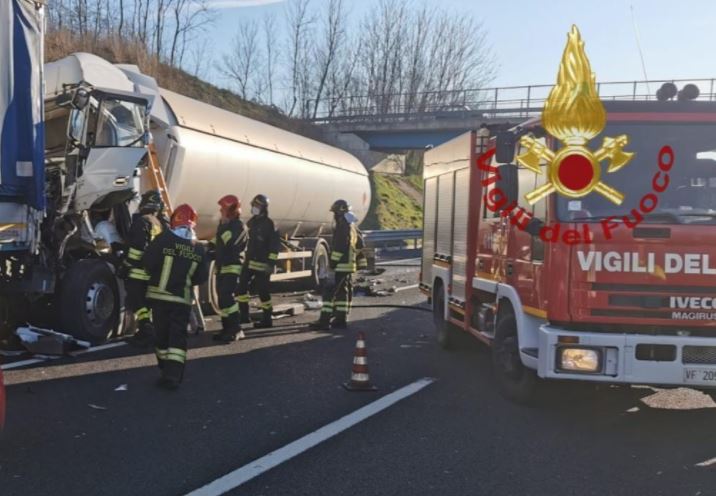 L’incidente – come spiegano i vigili del fuoco in una nota stampa – si è verificato alle 7.45 circa di oggi al km 638 dell’autostrada A1 direzione nord nel territorio di Ceprano. Il sinistro ha visto coinvolti due autoarticolati di cui uno adibito al trasporto di gas infiammabile.