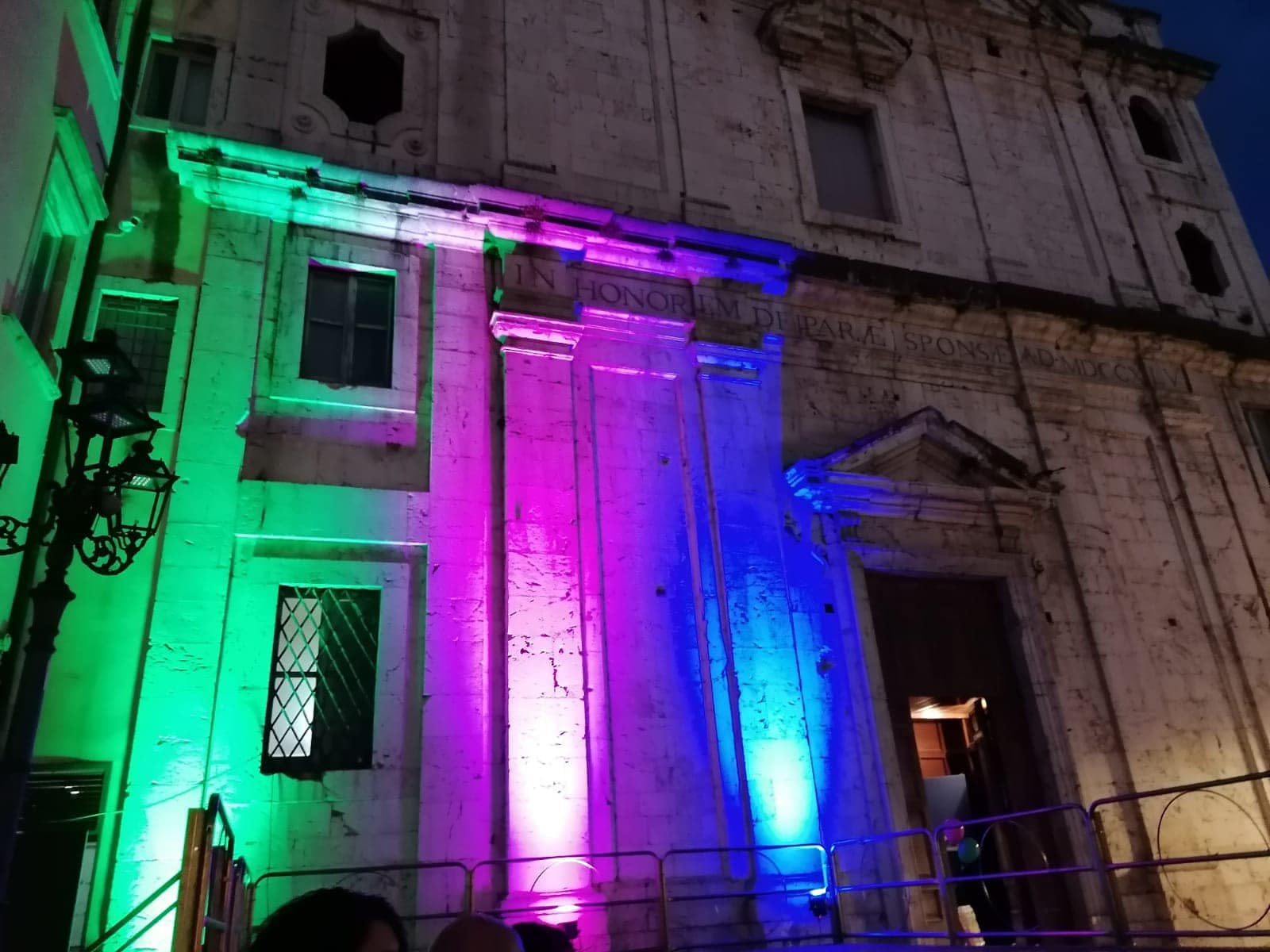 Alla fine della manifestazione sulla facciata sono state proiettate le luci che rappresentano questa giornata