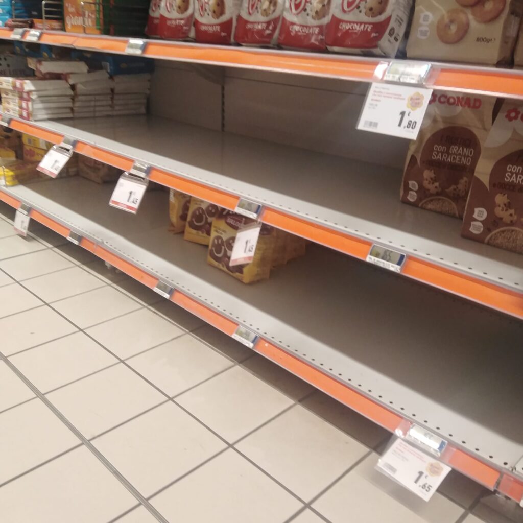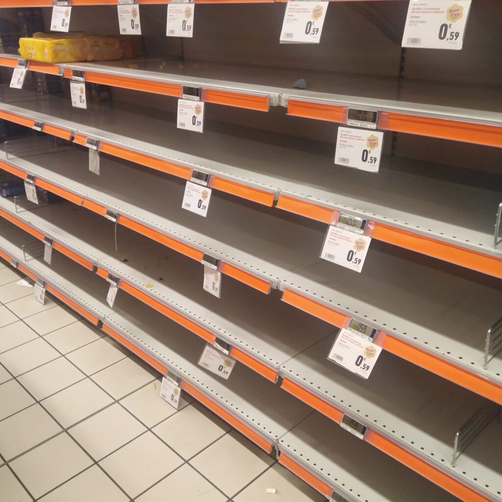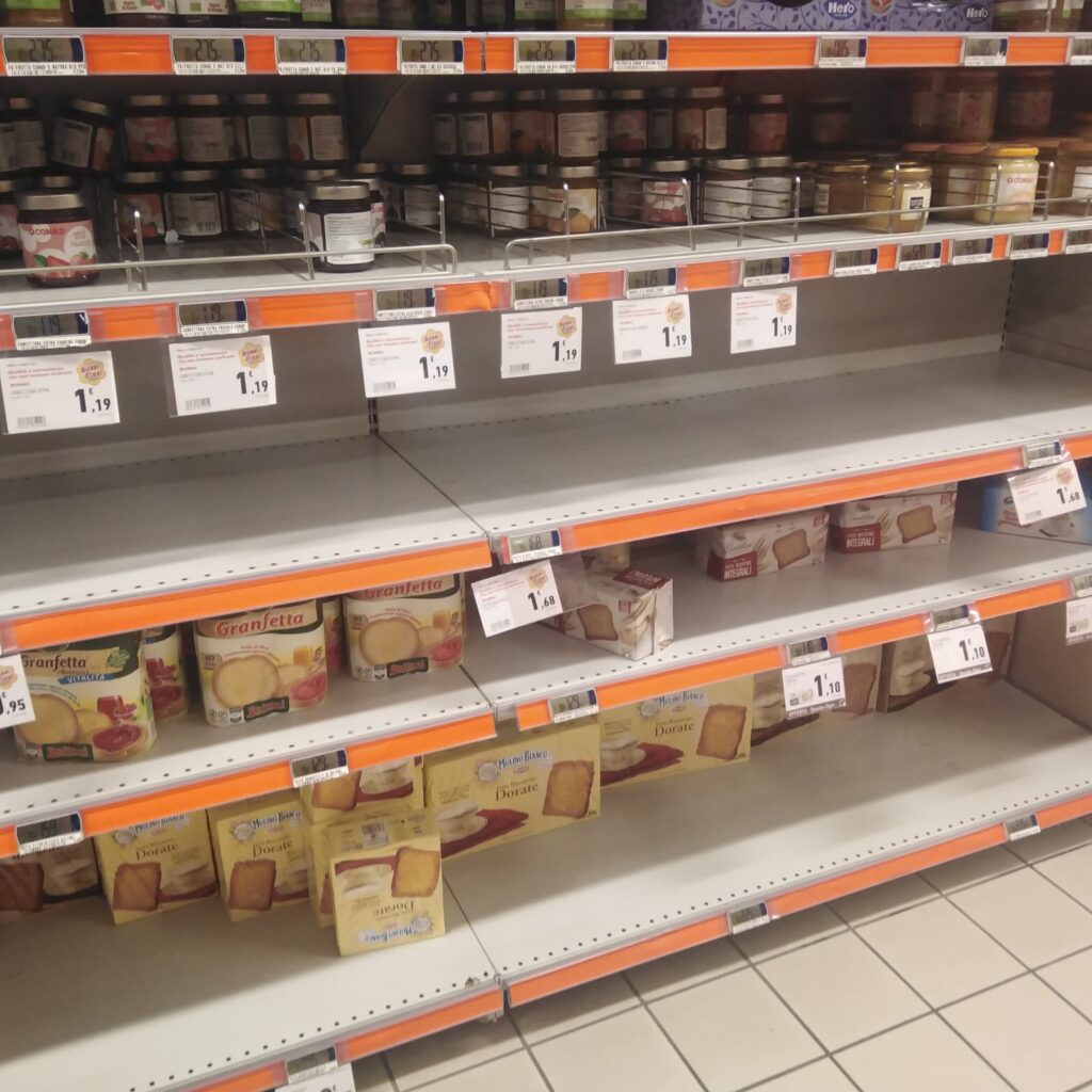 Tra la guerra in Ucraina, la crisi energetica, i costi che aumentano e l’imminente sciopero della logistica, in Ciociaria, come probabilmente in altre parti d’Italia, da ieri è scoppiata la psicosi ed è iniziata una vera e propria corsa all’accaparramento, con scaffali svuotati dal nord al sud della provincia.
