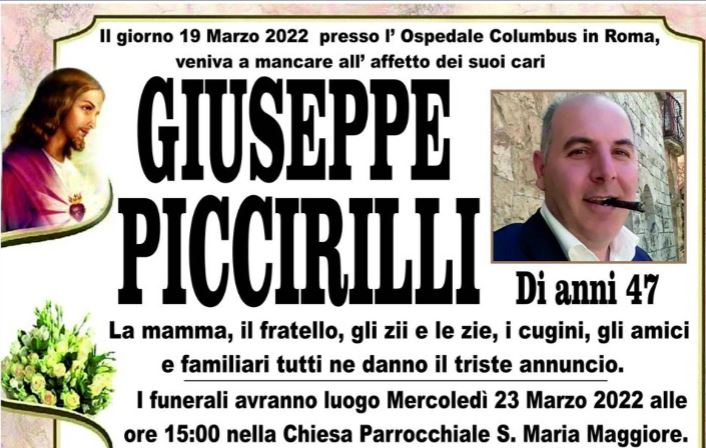 E’ morto nel giorno di San Giuseppe in un lettino dell’ospedale Columbus di Roma, dove era ricoverato da diversi giorni. Giuseppe Piccirilli, poliziotto 47enne di Ferentino (era nato in Svizzera il 17 dicembre del 1974) in servizio alla Stradale di Frosinone dopo aver prestato servizio anche a Roma Termini, è deceduto circondato dall’affetto dei suoi cari che non gli hanno fatto mancare il loro supporto neppure un minuto durante la sua lunga e coraggiosa battaglia contro la malattia che lo affliggeva e per quella vita che tanto amava.