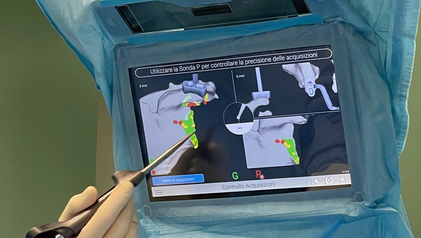 Durante l’intervento, il chirurgo vede proiettato su uno schermo i dati 3D della spalla del paziente, oltre ad avere una localizzazione precisa degli strumenti e dei dispositivi che sta utilizzando per impiantare la protesi.