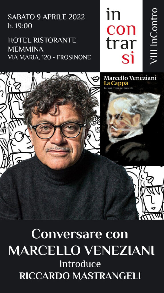 Marcello Veneziani sarà ospite, a Frosinone, della Libera Associazione InConTrarSi, sabato 9 aprile alle ore 19 presso l’Hotel Memmina (via Maria, 120), per presentare il saggio, appena arrivato in tutte le librerie, dal titolo “La cappa. Per una critica del presente” (Marsilio).