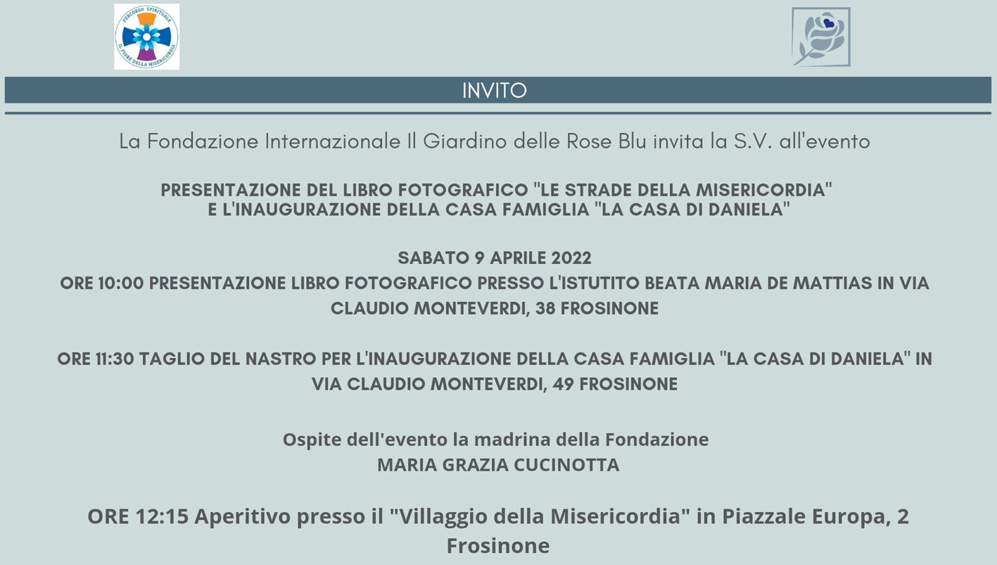 Si tratta della casa famiglia della Fondazione Internazionale “Il Giardino delle Rose Blu” di Frosinone che verrà inaugurata domani, sabato 9 aprile, con una cerimonia a cui prenderà parte anche la “madrina” della Fondazione l’attrice Maria Grazia Cucinotta.
