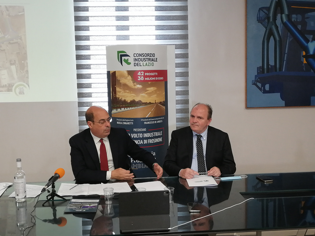 Ieri pomeriggio, presso la sede frusinate del Consorzio Industriale del Lazio, la presentazione ad opera del presidente del Consorzio Francesco De Angelis e del presidente della Regione Lazio Nicola Zingaretti.