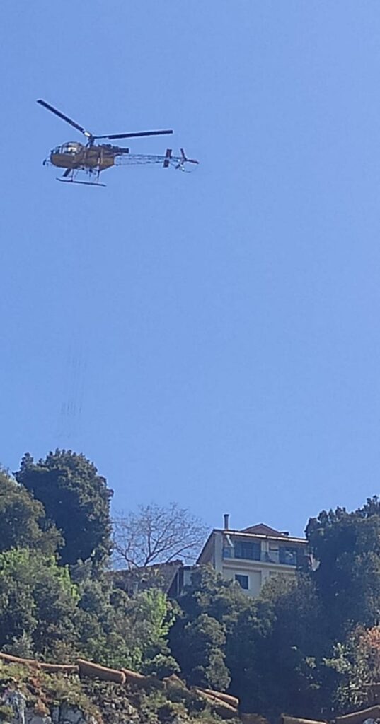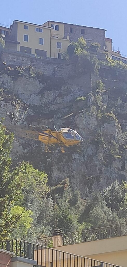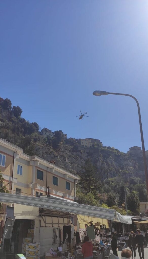 Ieri mattina tutti con gli occhi verso il cielo nel vedere all’opera l’elicottero che portava in quota materiale da usare per i lavori del costone sotto l’Ospedale. Si svolgeva lungo la sottostante Passeggiata San Giuseppe il mercato settimanale. Tutti a scattare foto con il cellulare quale ricordo dell’evento cui stavano assistendo.