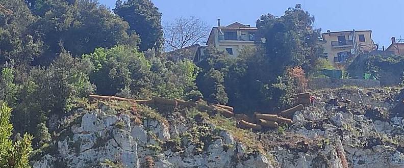 L’intervento del progetto redatto dai tecnici degli uffici comunali consiste nella pulizia di tutto il fronte e delle rocce pericolose in distacco con perforazioni speciali installando reti di contenimento consolidate addosso alla scarpata.
