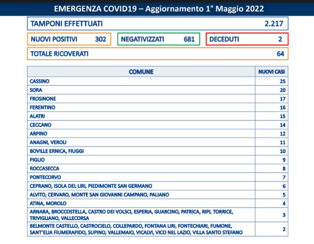 Quanto ai nuovi positivi se ne contano 302 ma a fronte di soli 2.217 test eseguiti. I guariti restano stabili a quota 681 mentre salgono di nuovo, altro dato allarmante, gli “attualmente positivi”, passati dai 59 di ieri ai 64 di oggi.