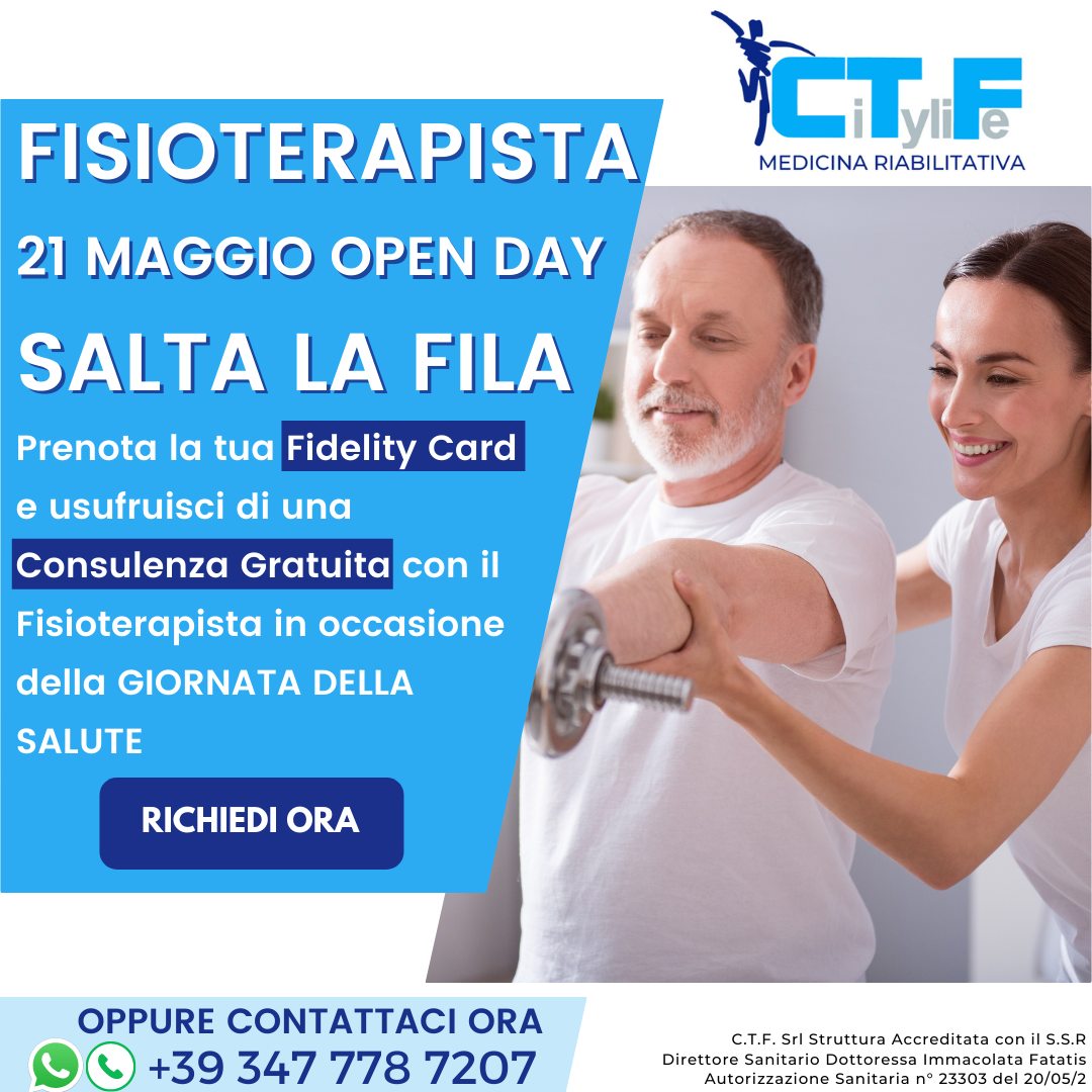 L’Open Day per la Giornata della Salute sarà un’occasione per coloro che vorranno avvalersi di consulenze mediche specialistiche finalizzate alla programmazione di piani riabilitativi individuali.