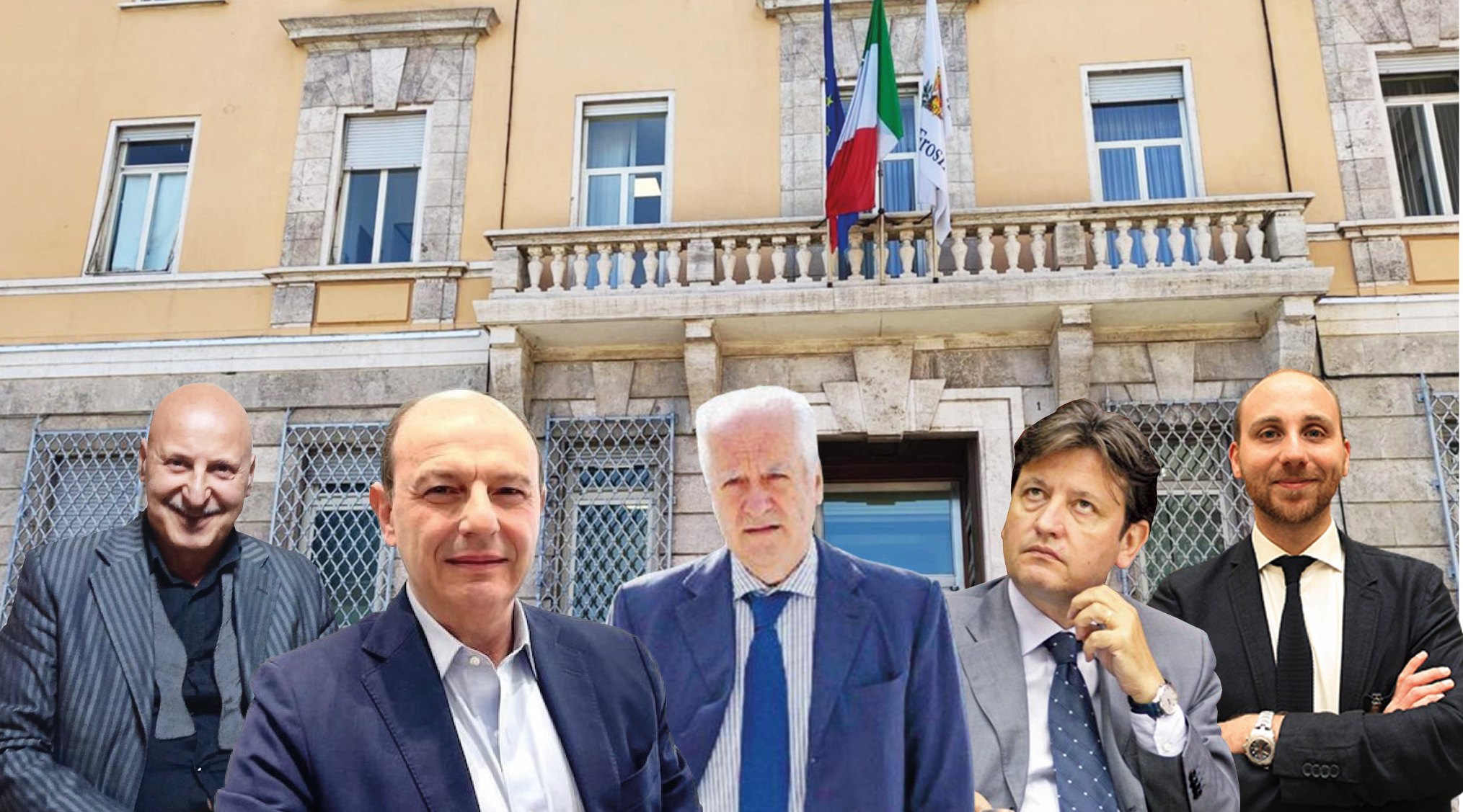 A contendersi la poltrona del massimo scranno sono Giuseppe Cosimato, Vincenzo Iacovissi, Domenico Marzi, Riccardo Mastrangeli e Mauro Vicano