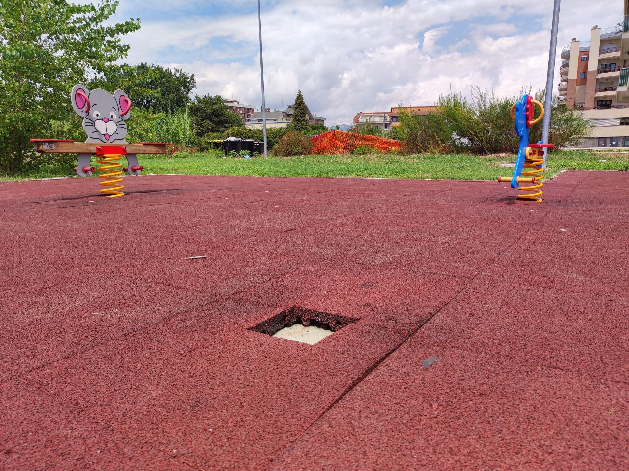 I giochi danneggiati, infatti, non saranno semplicemente sostituiti, ma dovranno essere ricollocati unitamente alle specifiche superfici antitrauma, eliminando giunture o collegamenti deteriorati o distrutti dai vandali.