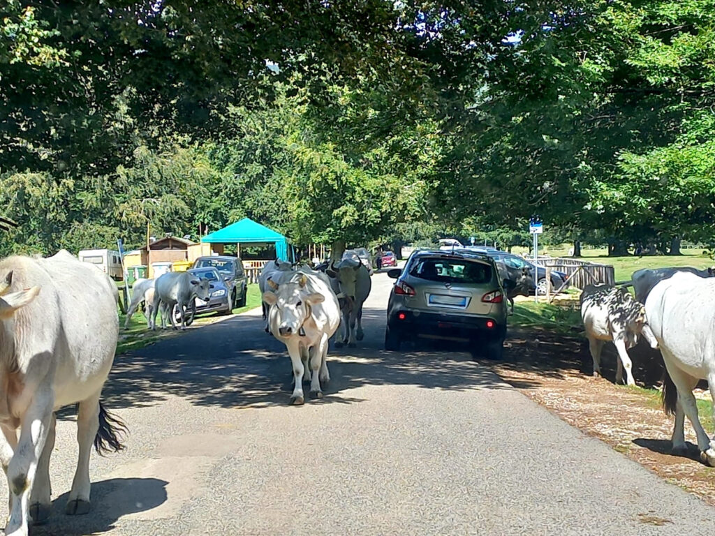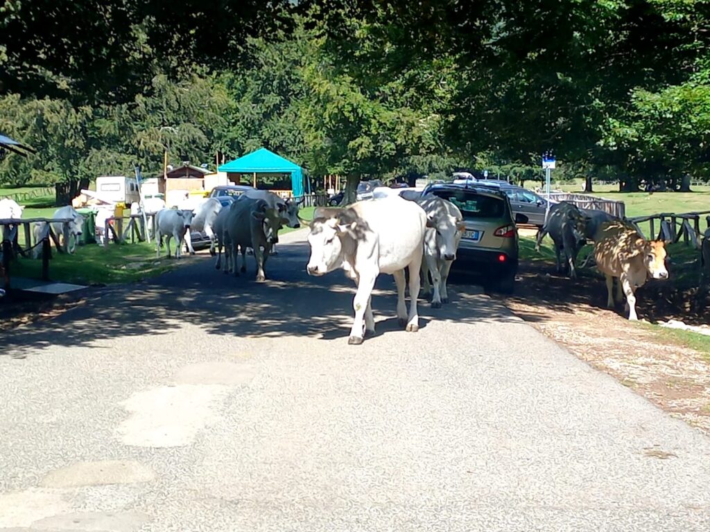 Quando ad un certo punto le vacche hanno notato la segnaletica con la scritta ‘bagni’, via quasi di corsa, verso i servizi pubblici, con la scritta però ‘fuori uso’. Tra l’altro la corsa delle bestie è stata una sorta di gimkana non solo tra le auto in sosta ma anche in mezzo ai tavoli alcuni con buste piene di leccornie da gustare con i gitanti che riposavano. Alcune bestiole hanno persino aperto buste sui tavoli per mangiare quello che trovava che di scatto si sono alzati prendendosela con il pastore che cercava di indirizzarle altrove. Immaginate sia la sorpresa e sia la rabbia dei presenti. Anche perché quella grossa mandria di vacche e tori erano accompagnate anche da cani maremmani che cercavano di indirizzarle dove voleva lo stesso pastore.