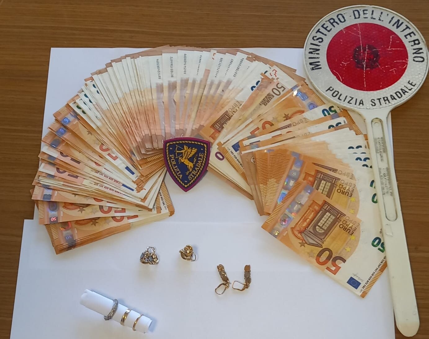 L’atteggiamento nervoso degli occupanti della Panda, insospettiva gli agenti della Sottosezione Polizia Stradale di Cassino, che effettuavano un controllo più accurato all’interno del veicolo, rinvenendo denaro contante pari a 6.900 euro e oggetti preziosi.